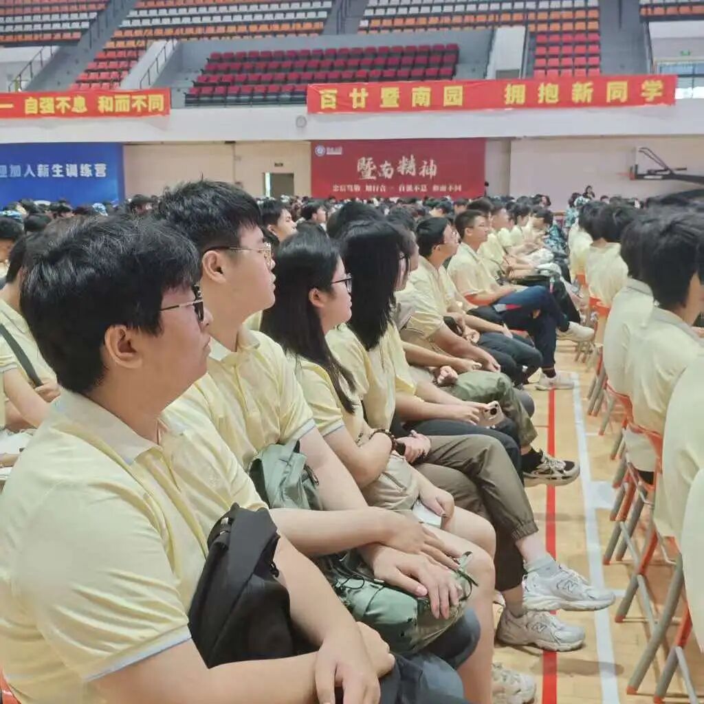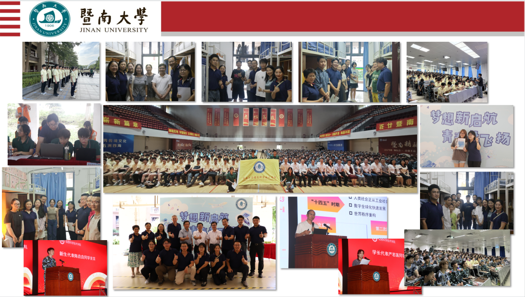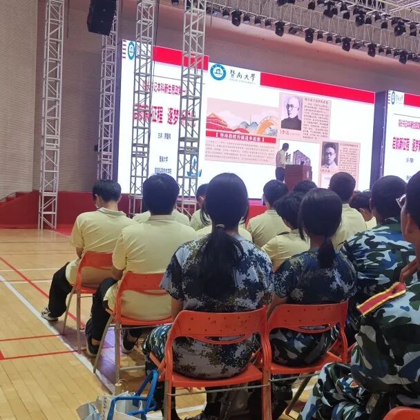 思政第一课首先讲述了“三落三起,五度播迁” 的百年建校史,一代代暨南人通过艰苦卓绝的拼搏,造就了学校在新时代的快速发展和优异成绩,勉励同学们牢记 “忠信笃敬” 校训,为擦亮暨南大学“金字招牌”贡献力量。
