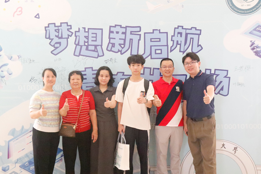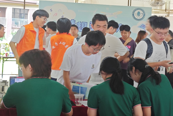 暨南大学副校长顾乃华、番禺校区管委会执行主任潘启亮、校区党委书记刘金顺、学工部部长陈晓明、学院党委书记罗国伟与学院学工口全体老师们一同在迎新现场看望到校新生。