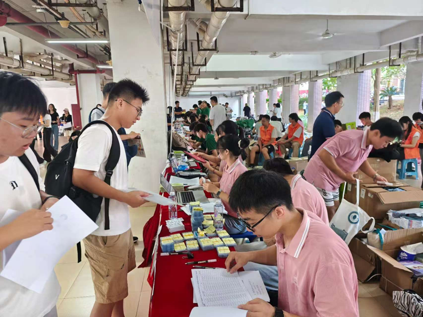 在迎新现场的每一个角落,都能看到志愿者们忙碌而温暖的身影。他们以热情的微笑和细致的服务迎接每一位新生与家长。志愿者们各司其职:有的在报到点耐心协助新生办理入学手续,细心核对材料、答疑解惑;有的主动伸出援手,帮助搬运行李、引导路线;还有的守候在现场,为许多家庭拍下充满仪式感的“入学全家福”,用镜头定格温情瞬间。此外,志愿者们还有序分发各类物资,将学院的贴心关怀落到实处。他们用真诚与行动温暖了整个迎新现场,成为新生踏入校园最可靠而动人的“第一站”。