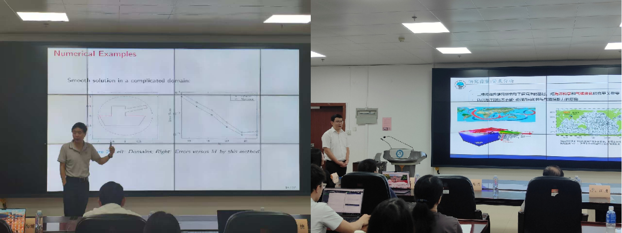 接下来的学术交流中,沈捷系统介绍了结合虚拟域嵌入方法与高效算法的谱方法最新进展,为复杂几何域上的椭圆型偏微分方程提供了高效精确的数值解法。三维海洋信息重构作为国家海洋强国建设的核心技术,已被明确纳入国家战略体系。高振展示了利用深度学习与降阶建模方法融合的算子学习网络,实现了三维海洋温盐剖面的重构和高效预测,为海洋观测和动力学模拟提供了创新工具。