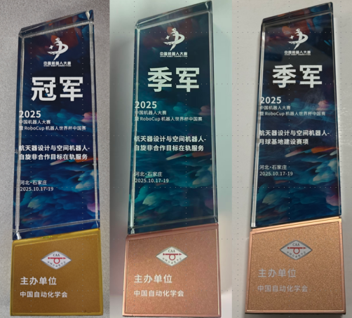 10月17日至19日,2025年中国机器人大赛暨RoboCup机器人世界杯中国赛在河北省石家庄国际会展中心举行。本次大赛汇聚了来自清华大学、上海交通大学等332所高校的1616支队伍同台竞技,展现技术创新与实践融合的顶尖水平。我校师生共40名前往石家庄参赛,最终在航天器设计与空间机器人自旋非合作目标在轨服务赛项中获得冠军和季军,在月球基地建设赛项中获得季军。