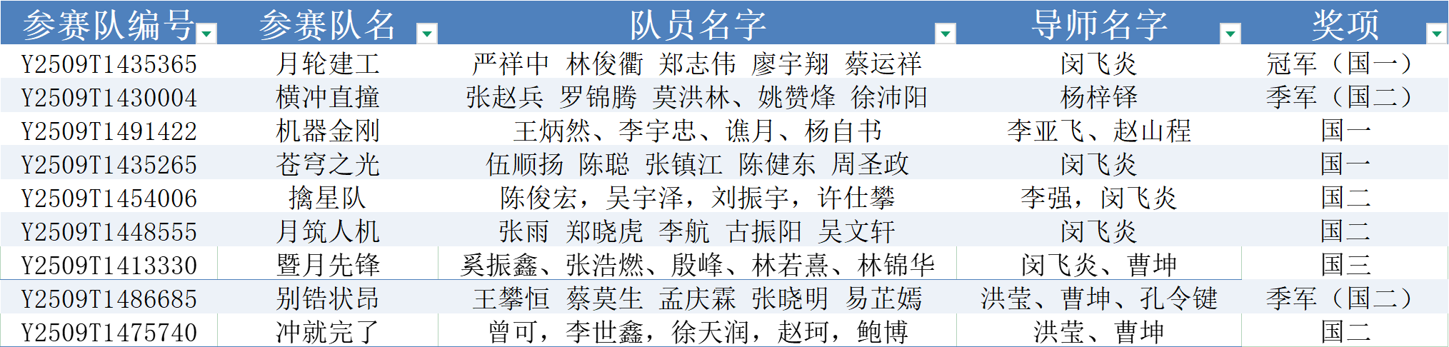 本次大赛,我校聚焦航空航天领域,围绕自旋非合作目标在轨服务、月球基地建设、微纳卫星设计以及创新创意共4项比赛展开系统研发与高强度训练。经过三天激烈角逐,我校最终获得全国一等奖3项、全国二等奖5项、全国三等奖1项。