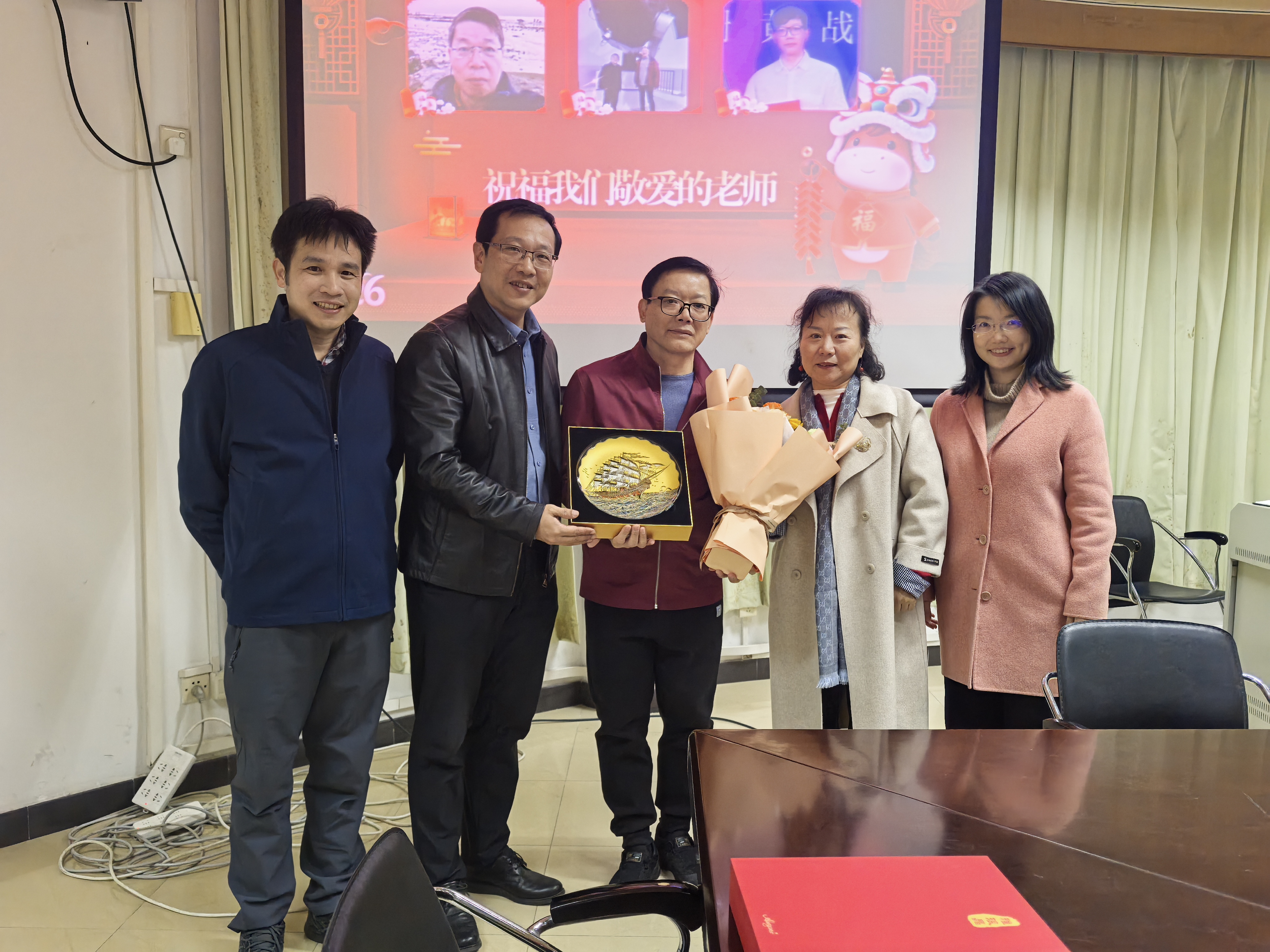 会议举行了温馨而庄重的退休教师荣休仪式。龙锦益主任介绍了彭青玉、黄战、孟小华三位荣休教师的履历与贡献。龙主任代表全系师生对三位老师几十年的辛勤耕耘表示由衷感谢,希望他们退而不休,常回系里看看,继续为青年后辈传经送宝。罗国伟书记、龙锦益主任、彭盼书记及于志秀老师共同为荣休教师颁发了定制纪念品,送上最诚挚的祝福。黄战老师和孟小华老师分别发表了感言,深情回顾了在校工作的点点滴滴,表达了对讲台、同事及学生的深深眷恋,并祝愿大家在2026年身体健康、再创辉煌。
