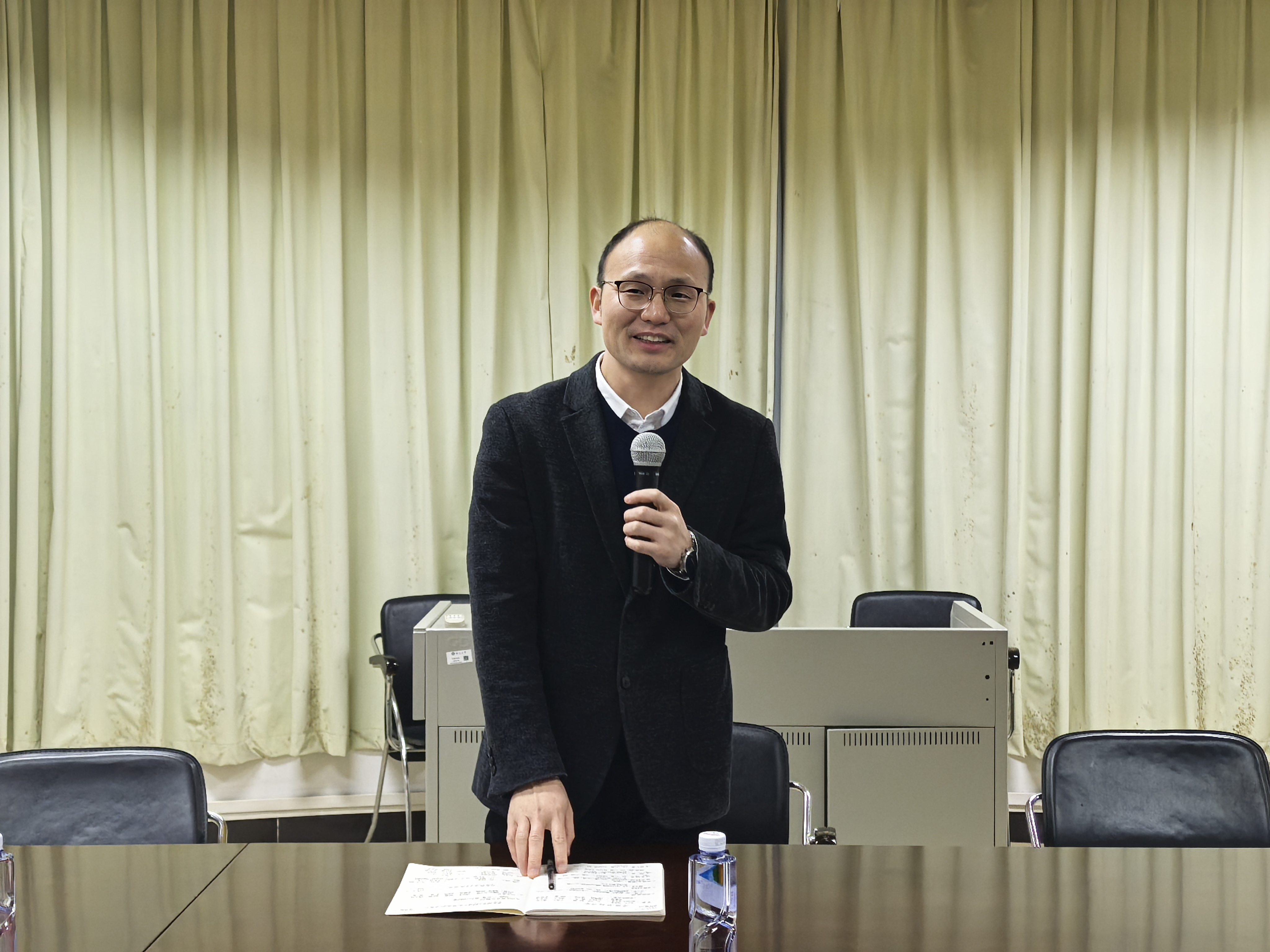 系主任龙锦益就过去一年的工作进行了全面梳理和总结。他首先对全系教师的辛勤付出表示高度认可,并强调,正是基于全系上下的共同努力,本系在学科建设、人才培养、师资队伍建设及科研成果产出等多个方面均取得了显著进展。龙主任在肯定成绩的同时,也客观分析了2025年度工作中存在的短板与不足,在此基础上,对2026年的重点工作作出部署。他指出,未来要持续深化教育教学改革,全面落实立德树人根本任务;不断优化人才引进与培养机制,强化对在职教师的支持与发展;进一步加强实验室建设,提升学生实践教学与创新能力培养条件,努力营造让每位教师拥有获得感、幸福感的育人环境和工作氛围。
