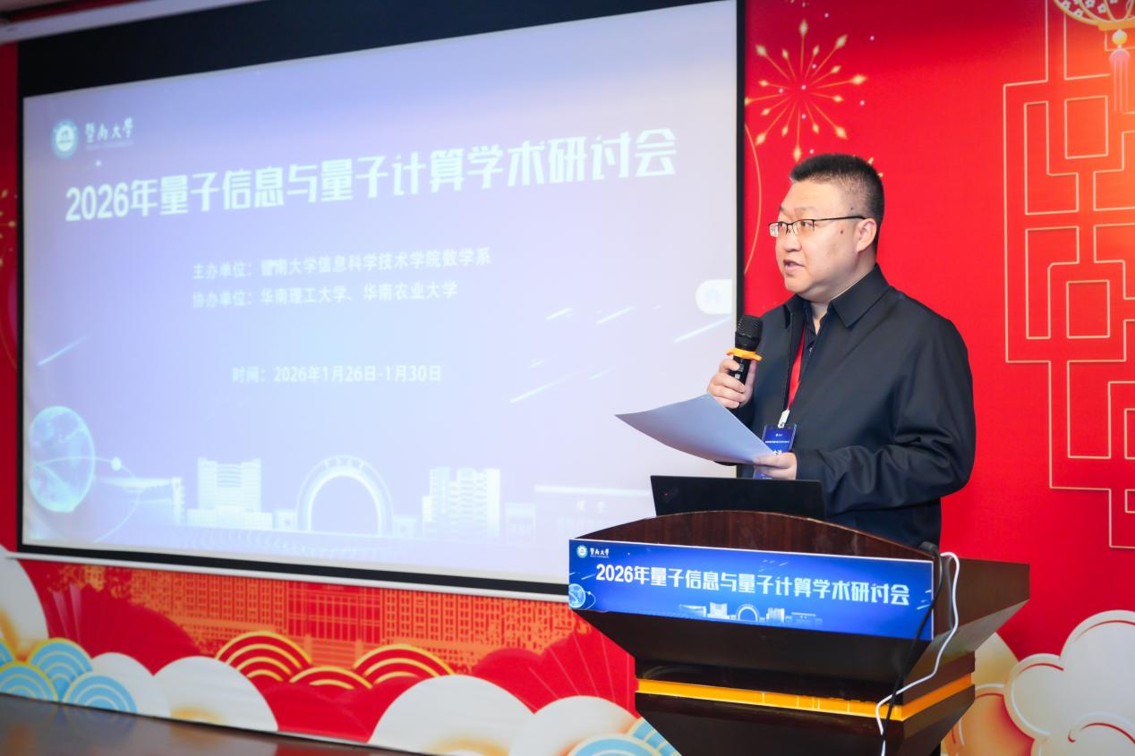 2026年1月26日至30日,由暨南大学信息科学技术学院数学系主办,华南理工大学、华南农业大学协办的“2026年量子信息与量子计算学术研讨会”在暨南大学成功举行。本次会议汇聚了来自清华大学、上海交通大学、中山大学、厦门大学、华南理工大学、太原理工大学、陕西师范大学、安徽大学、南昌大学、内蒙古大学、首都师范大学、河北师范大学、四川师范大学、华南农业大学、广东工业大学等国内各大高校的80余位专家学者,通过25场高质量的学术报告,搭建起一个学科交叉、思想碰撞的高层次学术交流平台,共同探讨量子信息与量子计算领域的前沿进展与未来方向。