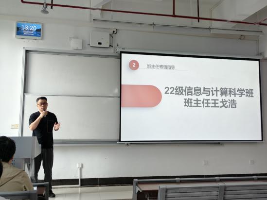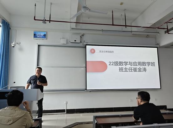 随后,两位班主任结合专业特色与工作经验,为毕业生送上针对性指导。崔金涛围绕数学与应用数学专业多元发展路径,梳理了教育行业、公考选调、考研深造、企业就业等方向的发展要点,结合往届优秀学子案例给出具体实操建议,叮嘱同学们夯实对应专业能力、提前规划备考,同时坚守学术诚信底线,以平和心态面对求职挫折,他也承诺将全程为同学们提供指导与支持。王戈浩立足信息与计算科学专业数学与计算机交叉的核心优势,结合行业需求讲解了软件开发、数据分析等对口岗位的求职技巧,强调简历撰写要突出数学建模、项目实操等核心亮点,提醒同学们平衡好毕业设计与求职的时间分配,进入职场后保持终身学习态度,注重团队协作与沟通能力培养,在专业领域脚踏实地积累经验。