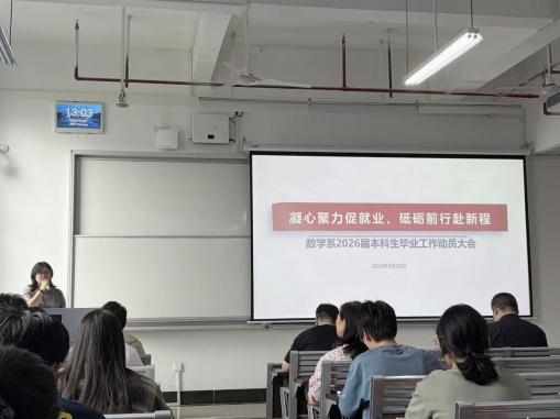 本次年级大会暨就业动员会的顺利召开,进一步明确毕业季各项工作的重点任务,为毕业生提供实用的求职指导和经验参考,提振毕业生的求职信心,凝聚了院系、老师与毕业生的合力,为数学系2026届本科生顺利毕业、高质量就业奠定坚实基础。